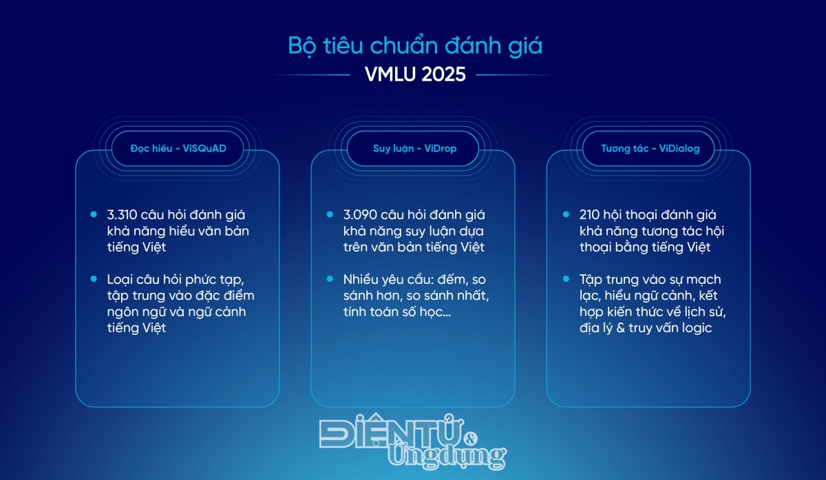 Được giới thiệu lần đầu tiên vào năm 2023, phiên bản mới của VMLU (Vietnamese Multitask Language Understanding) đã trở thành bộ tiêu chuẩn “Make in Vietnam” tiên phong, tạo động lực cho nhiều nhóm nghiên cứu trong nước cải tiến chất lượng của LLM tiếng Việt.
